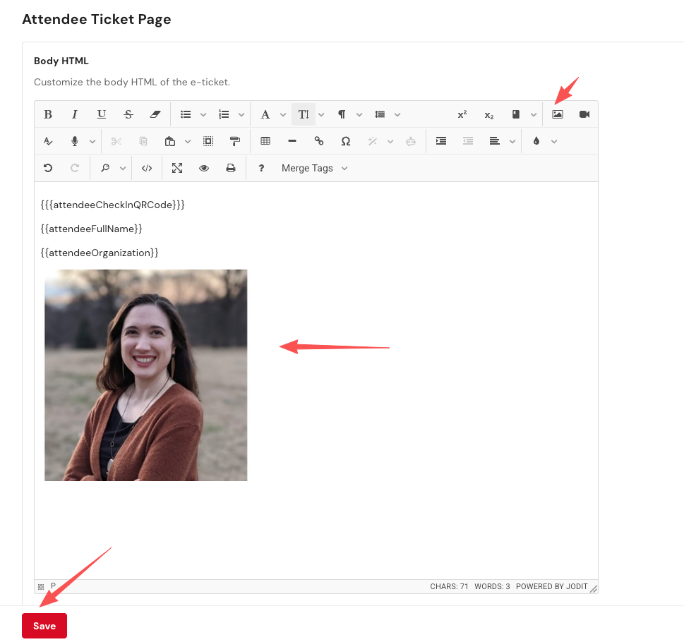 Rich Text Editing on Attendee Ticket Page