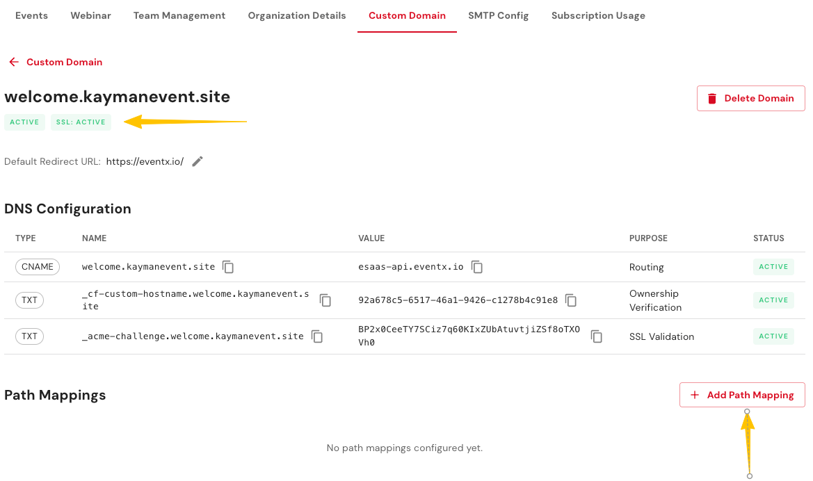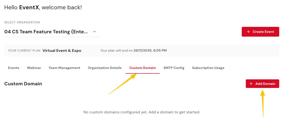 Step 1 — Self Configure the Custom Domain in the EventX Portal