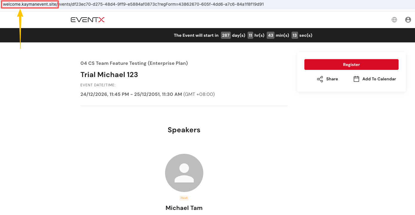 Instead of using the default EventX URL: