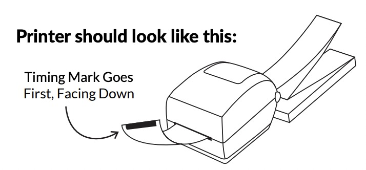 Load the badge stock. Insert your stock through the slot at the rear of the printer, feeding the edge with the black line into the printer slot first. The mark is read through a sensor on the bottom of your printer, so the black mark must be face-down with the blank or branded stock face-up